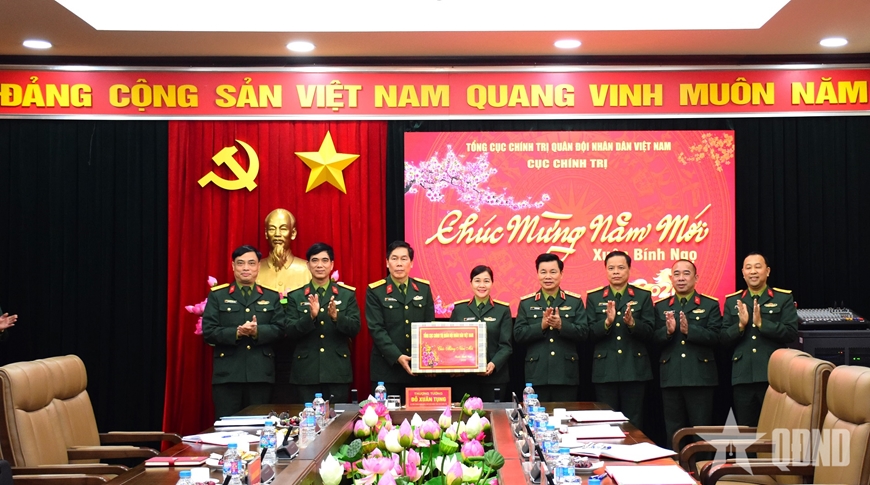Trong không khí ấm áp, thân mật, thay mặt lãnh đạo TCCT, Thượng tướng Đỗ Xuân Tụng gửi tới các đồng chí chỉ huy Cục Chính trị, chỉ huy các phòng, ban cùng toàn thể cán bộ, nhân viên lời chúc mừng năm mới tốt đẹp với khí thế mới và nhiều thắng lợi mới.