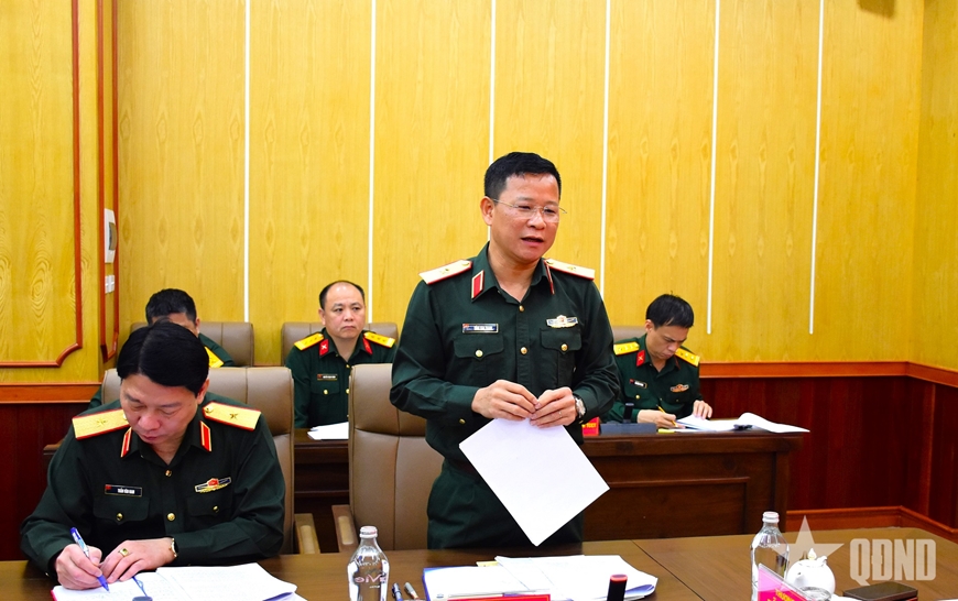 | Đại biểu lãnh đạo Cục Tuyên huấn (Tổng cục Chính trị) phát biểu tại hội nghị. |