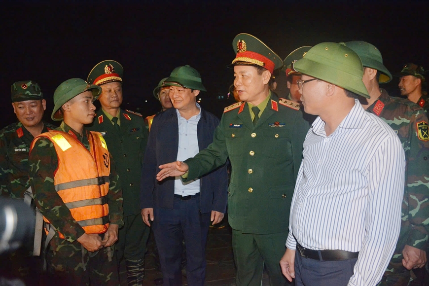 Báo cáo với đoàn công tác của Tổng cục Chính trị, chỉ huy các lực lượng cho biết, ngay sau khi nhận chỉ đạo của Thủ tướng Chính phủ Phạm Minh Chính và Bộ Quốc phòng về việc khẩn trương bắc cầu phao bảo đảm giao thông cho nhân dân, các đơn vị đã nhanh chóng cơ động lực lượng, phương tiện, tổ chức khảo sát, hiệp đồng, triển khai thi công trong điều kiện thời gian gấp, yêu cầu kỹ thuật cao, địa hình, thủy văn phức tạp. Hiện nhiệm vụ cơ bản đã hoàn tất, bảo đảm đúng tiến độ.
