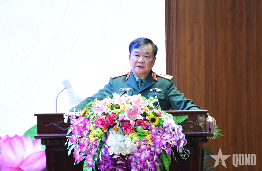 | Thượng tướng Hoàng Xuân Chiến phát biểu tại buổi làm việc. |