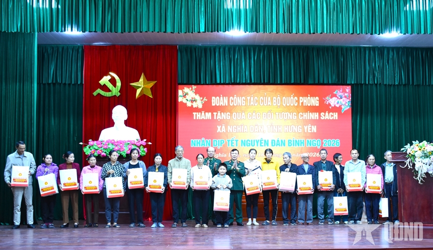 Dịp này, Thượng tướng Hoàng Xuân Chiến và đoàn công tác đã trao nhiều phần quà ý nghĩa của Quân ủy Trung ương, Bộ Quốc phòng tới các đối tượng chính sách trên địa bàn xã Nghĩa Dân. Những phần quà thể hiện sự quan tâm, trách nhiệm và tình cảm sâu sắc của cán bộ, chiến sĩ toàn quân đối với các gia đình chính sách, người có công với cách mạng, góp phần động viên tinh thần, giúp các gia đình đón Tết thêm đủ đầy, ấm áp.
