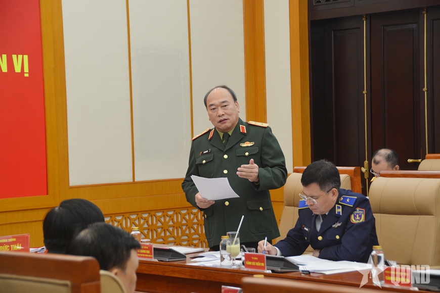 | Trung tướng Lê Quang Đạo, Phó tổng Tham mưu trưởng phát biểu tại hội nghị. |