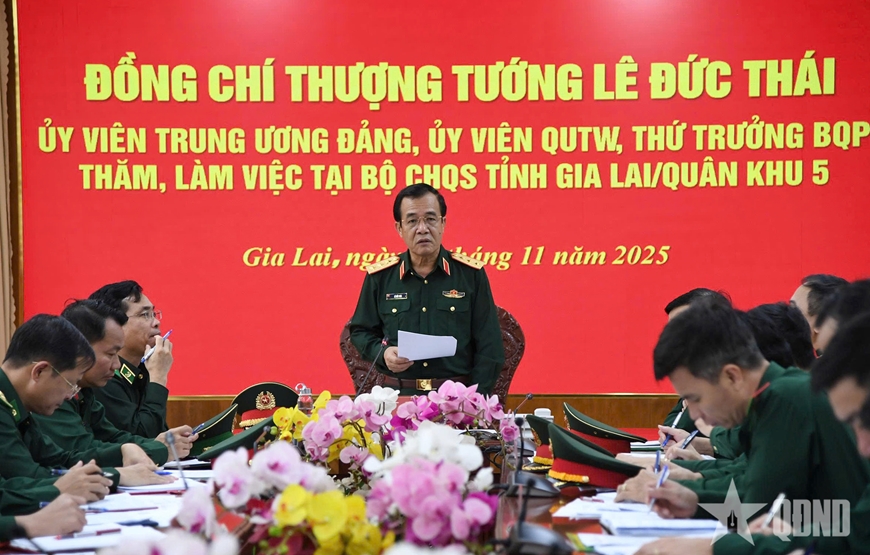 Sau khi nghe đơn vị báo cáo và các ý kiến trao đổi, kiến nghị tại buổi làm việc, Thượng tướng Lê Đức Thái ghi nhận, biểu dương, đánh giá cao tinh thần trách nhiệm và kết quả đạt được trên các mặt công tác, các nhiệm vụ quân sự, quốc phòng, công tác biên phòng của Bộ CHQS tỉnh Gia Lai, Ban chỉ huy Bộ đội Biên phòng tỉnh Gia Lai.