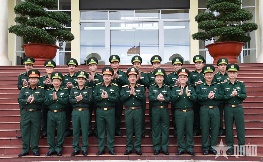 | Thượng tướng Lê Đức Thái và cán bộ Bộ CHQS tỉnh Gia Lai. |