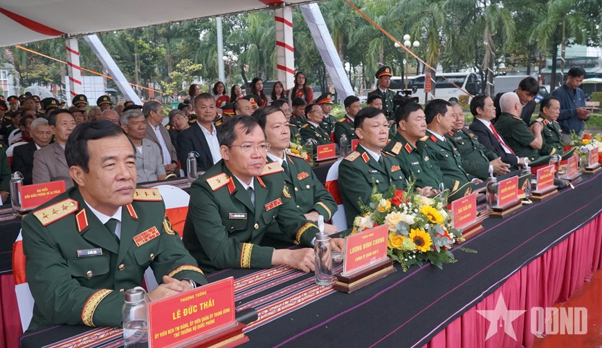 | Thượng tướng Lê Đức Thái và lãnh đạo các đơn vị, địa phương dự Lễ kỷ niệm 60 năm Chiến thắng Plei Me. |