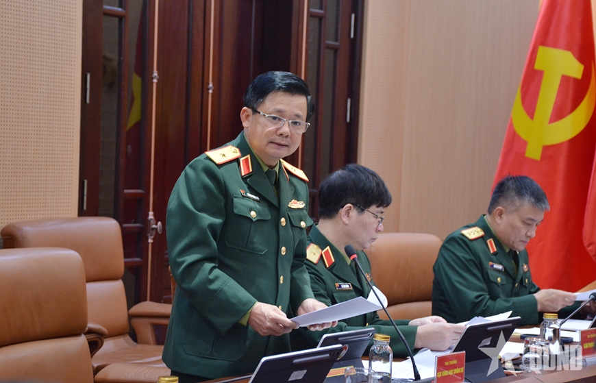 | Thiếu tướng Dương Minh Hải, Cục trưởng Cục Khoa học Quân sự phát biểu tại hội nghị. |