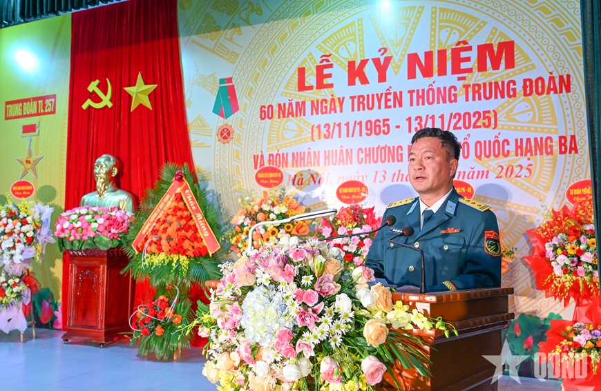 Phát biểu tại buổi lễ, thay mặt Thường vụ Đảng ủy, Bộ tư lệnh Quân chủng Phòng không - Không quân, Trung tướng Trần Ngọc Quyến biểu dương và chúc mừng những thành tích cán bộ, chiến sĩ Trung đoàn 257 đạt được trong 60 năm qua.