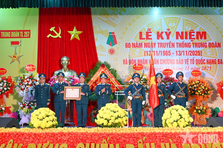 Tại buổi lễ, thừa ủy quyền của Chủ tịch nước, Trung tướng Trần Ngọc Quyến trao Huân chương Bảo vệ Tổ quốc hạng Ba tặng Trung đoàn 257.