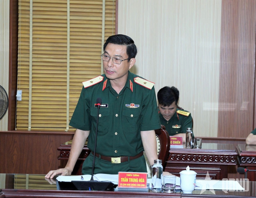 Thiếu tướng Trần Trung Hòa, Tư lệnh Binh chủng Công binh phát biểu tại hội nghị. |