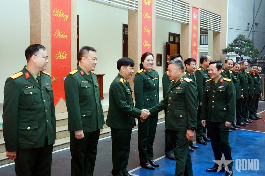 Lãnh đạo, chỉ huy và cán bộ chủ chốt Cục Hậu cần, Tổng cục Chính trị đón Thượng tướng Lê Quang Minh cùng đoàn công tác đến thăm, chúc Tết.