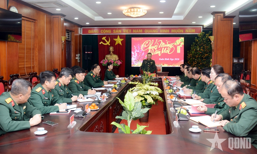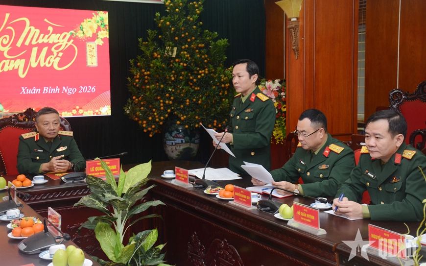 Tại buổi thăm, chúc Tết, Đại tá Trương Mạnh Cường, Cục trưởng Cục Hậu cần báo cáo với Thượng tướng Lê Quang Minh và đoàn công tác về kết quả nổi bật trong công tác bảo đảm hậu cần thời gian qua, cùng việc triển khai các hoạt động chuẩn bị đón Tết Nguyên đán Bính Ngọ 2026 cho cán bộ, nhân viên, chiến sĩ toàn Tổng cục và Cục Hậu cần.