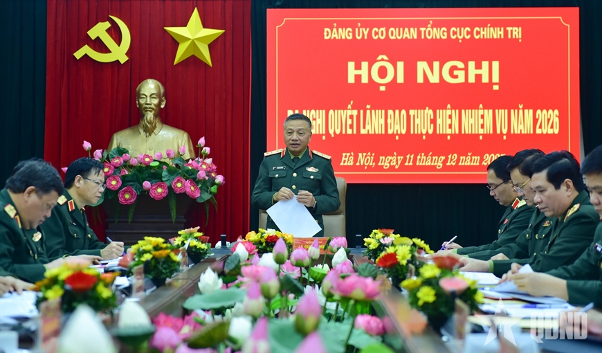 Về phương hướng lãnh đạo thực hiện nhiệm vụ năm 2026, hội nghị xác định tổ chức thực hiện nghiêm nghị quyết đại hội đảng các cấp; quán triệt sâu sắc và tổ chức thực hiện hiệu quả chỉ đạo của đồng chí Tổng Bí thư Tô Lâm về "2 kiên định, 2 đẩy mạnh, 2 ngăn ngừa" và "5 vững"; thường xuyên đổi mới, triển khai thực hiện đồng bộ các giải pháp nâng cao chất lượng hiệu quả công tác nghiên cứu, dự báo và tham mưu, chỉ đạo chiến lược về công tác Đảng, công tác chính trị, xây dựng Đảng bộ Quân đội trong sạch, vững mạnh tiêu biểu, Quân đội vững mạnh về chính trị,...