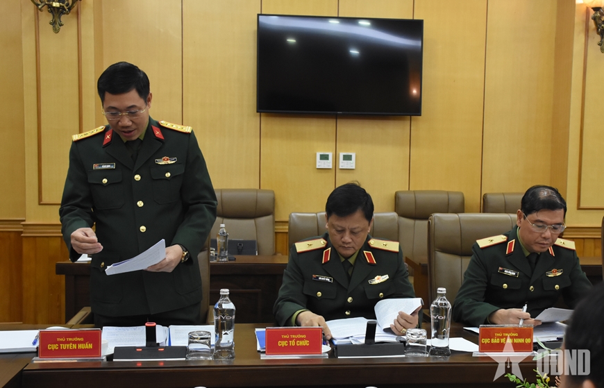 | Đại biểu Văn phòng Tổng cục Chính trị phát biểu tại hội nghị. |