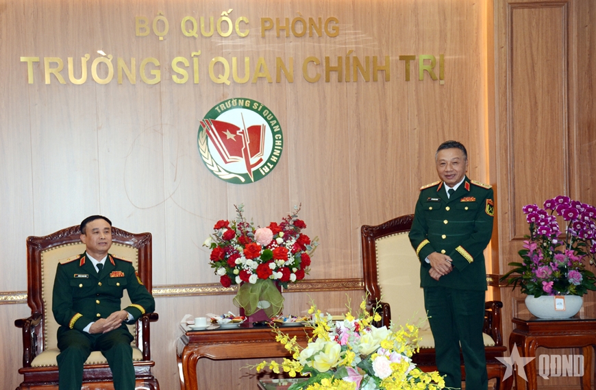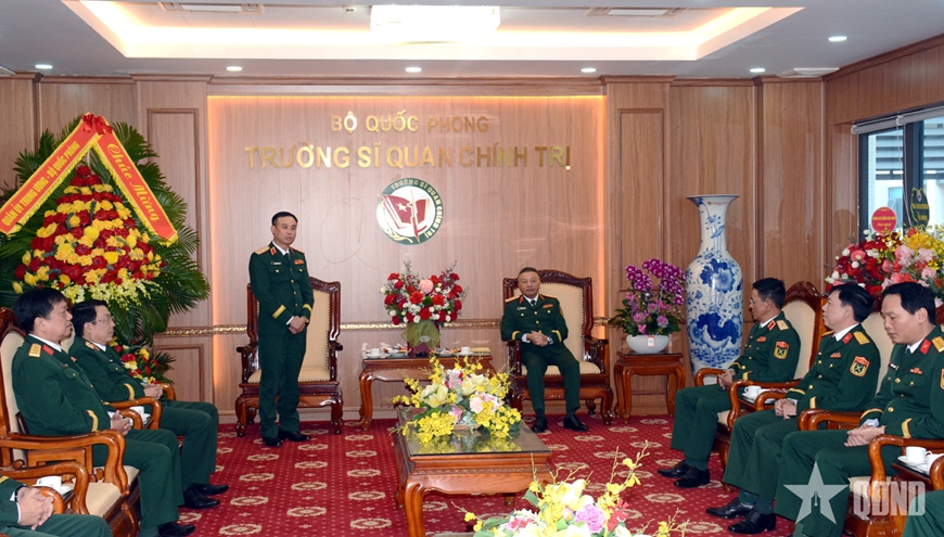 Tại buổi thăm, chúc mừng, thay mặt Đảng ủy, Ban giám hiệu, Thiếu tướng, PGS, TS Lương Thanh Hân, Hiệu trưởng Trường Sĩ quan Chính trị báo cáo với Thượng tướng Lê Quang Minh và đoàn công tác tình hình giáo dục, đào tạo và kết quả nổi bật trong thực hiện nhiệm vụ chính trị trung tâm của nhà trường thời gian qua. Theo đó, từ đầu năm 2025 đến nay, Trường Sĩ quan Chính trị đã hoàn thành tốt nhiệm vụ giáo dục, đào tạo, nghiên cứu khoa học và các nhiệm vụ đột xuất, trong đó có nhiều nhiệm vụ hoàn thành xuất sắc.