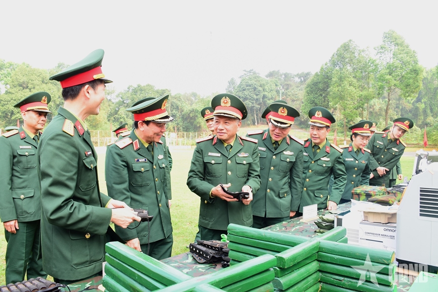 | Thượng tướng Lê Quang Minh tham quan mô hình học cụ của Đoàn 285. |