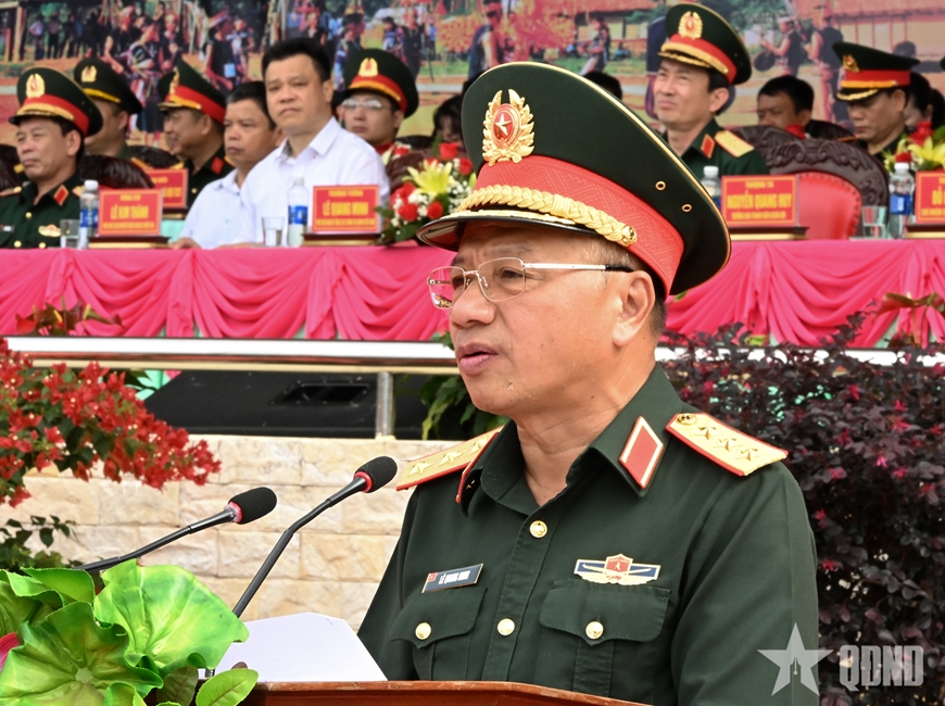 Thượng tướng Lê Quang Minh, Phó chủ nhiệm Tổng cục Chính trị QĐND Việt Nam phát biểu. |