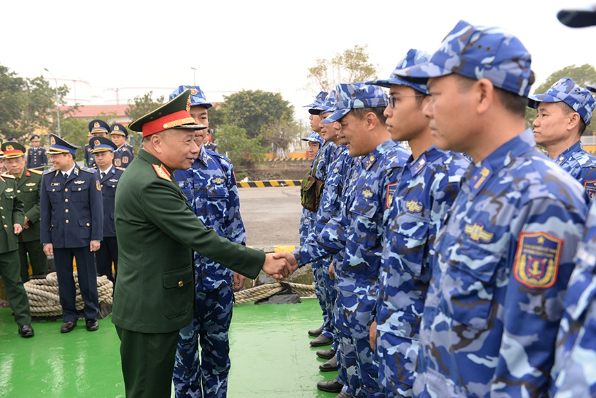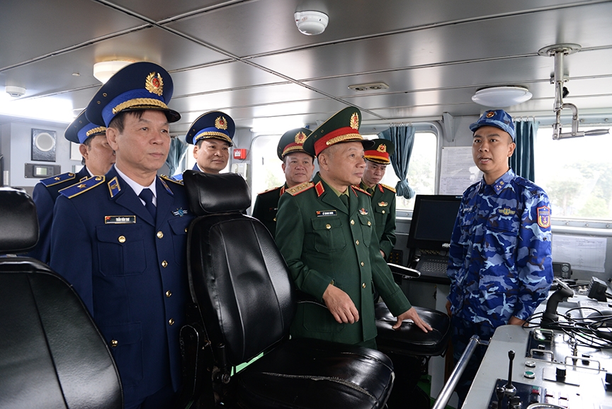| Thượng tướng Lê Quang Minh kiểm tra công tác sẵn sàng chiến đấu tại đơn vị trực sẵn sàng chiến đấu của Bộ tư lệnh Vùng Cảnh sát biển 1. |