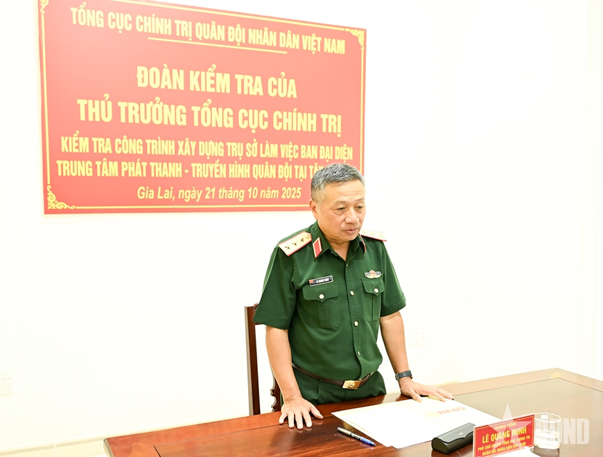 Sau khi nghe đại diện các cơ quan, đại diện nhà thầu báo cáo và kiểm tra thực tế công tác thi công công trình, Thượng tướng Lê Quang Minh, Phó chủ nhiệm Tổng cục Chính trị QĐND Việt Nam ghi nhận, đánh giá cao vai trò tham mưu, hướng dẫn của Cục Hậu cần (Tổng cục Chính trị QĐND Việt Nam); tinh thần làm việc trách nhiệm, chuyên nghiệp của Trung tâm PT-TH Quân đội và các nhà thầu.