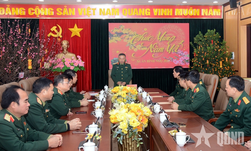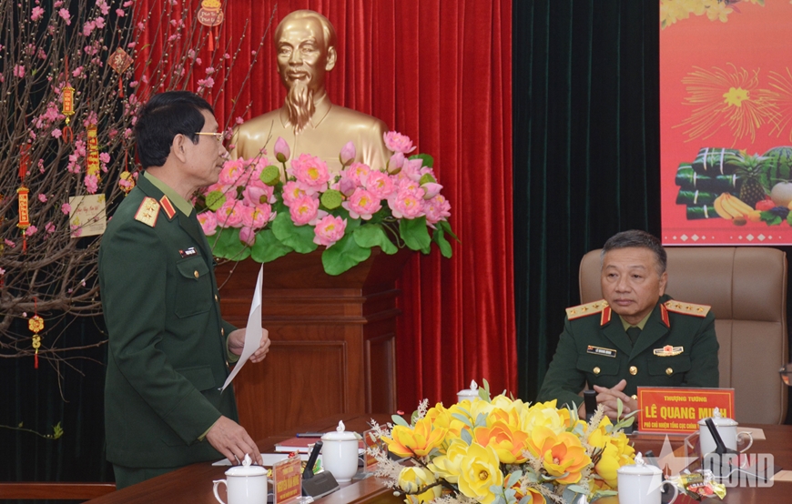 | Thượng tướng Lê Quang Minh thay mặt lãnh đạo Tổng cục Chính trị đến thăm, chúc Tết cán bộ, nhân viên Cục Tổ chức. |