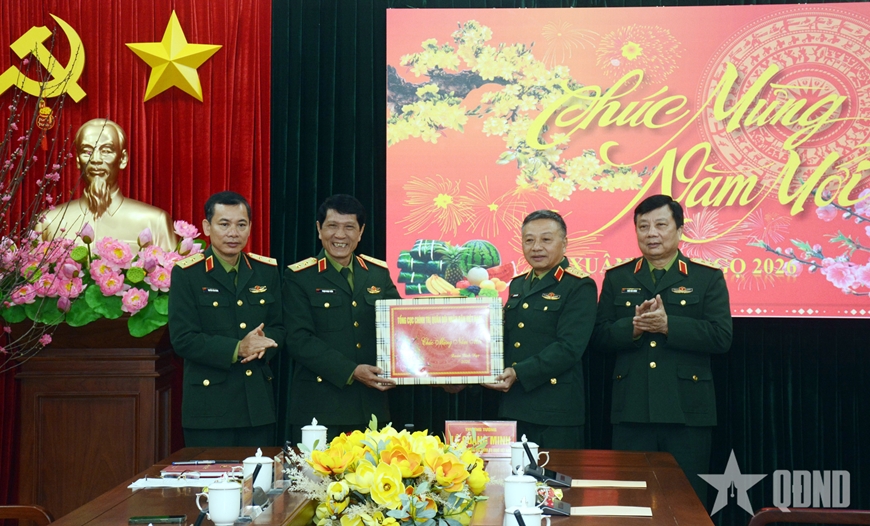 | Thượng tướng Lê Quang Minh trao quà Tết của Tổng cục Chính trị tặng Cục Tổ chức. |