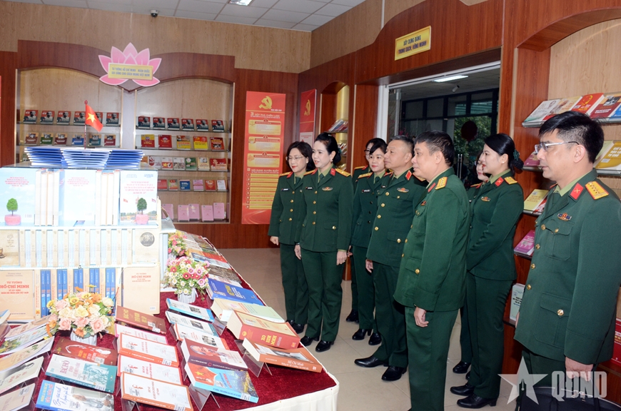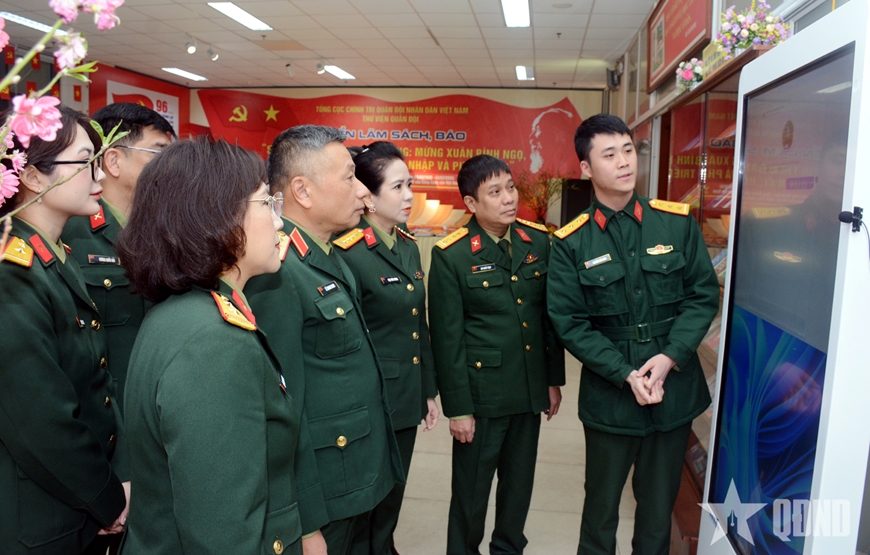 Thượng tướng Lê Quang Minh tham quan công tác trưng bày và ứng dụng công nghệ số vào hoạt động quản lý thư viện tại Thư viện Quân đội.