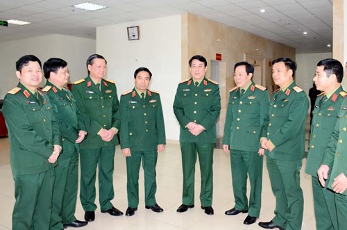 Thượng tướng Lương Cường trò chuyện với lãnh đạo, chỉ huy Bộ tư lệnh Thủ đô.