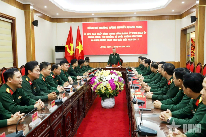 Thượng tướng Nguyễn Quang Ngọc thăm, chúc mừng Trường Sĩ quan Lục quân 1 nhân Ngày Nhà giáo Việt Nam.