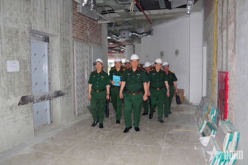 | Thượng tướng Nguyễn Quang Ngọc và đoàn công tác kiểm tra công trình Trạm khách T20, Bộ CHQS tỉnh Nghệ An. |