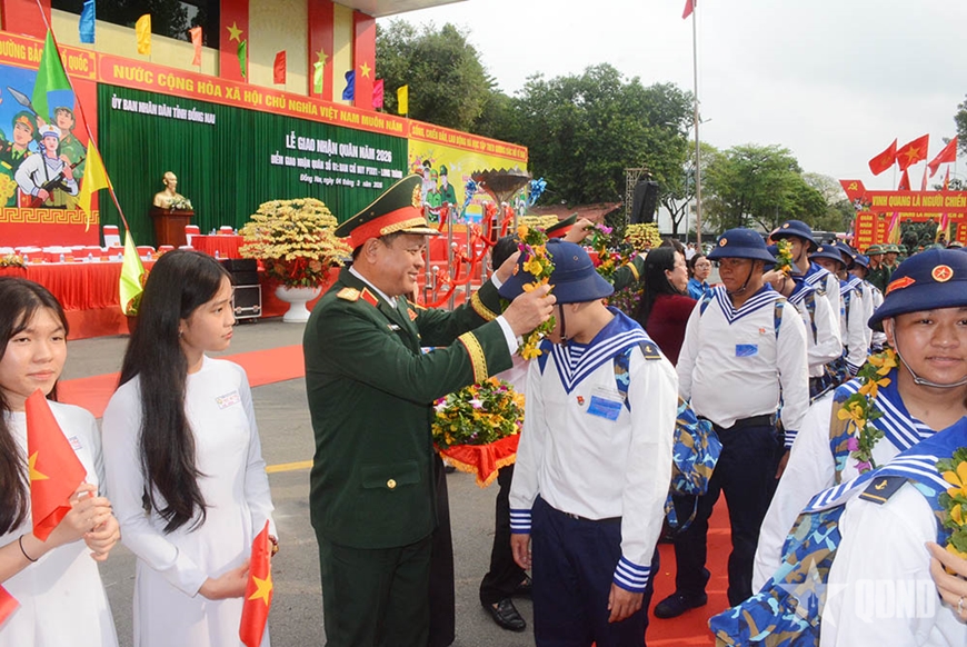 Phấn khởi chào đón lớp chiến sĩ mới, Thượng tướng Nguyễn Trường Thắng cùng lãnh đạo Quân khu 7, tỉnh Đồng Nai ân cần thăm hỏi, động viên, tặng hoa, trao khăn rằn cho các thanh niên lên đường nhập ngũ. Đồng chí Thứ trưởng Bộ Quốc phòng mong các thanh niên tiếp tục kế thừa truyền thống “miền Đông gian lao mà anh dũng”, phát huy tinh thần nhiệt huyết, năng động, sáng tạo của tỉnh nhà, tích cực học tập, rèn luyện nâng cao bản lĩnh chính trị, phẩm chất đạo đức, không ngừng phấn đấu trở thành quân nhân ưu tú, xứng danh Bộ đội Cụ Hồ...