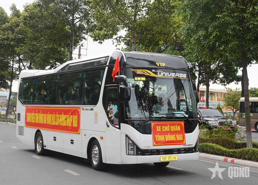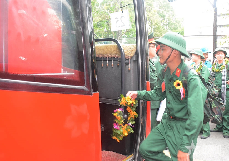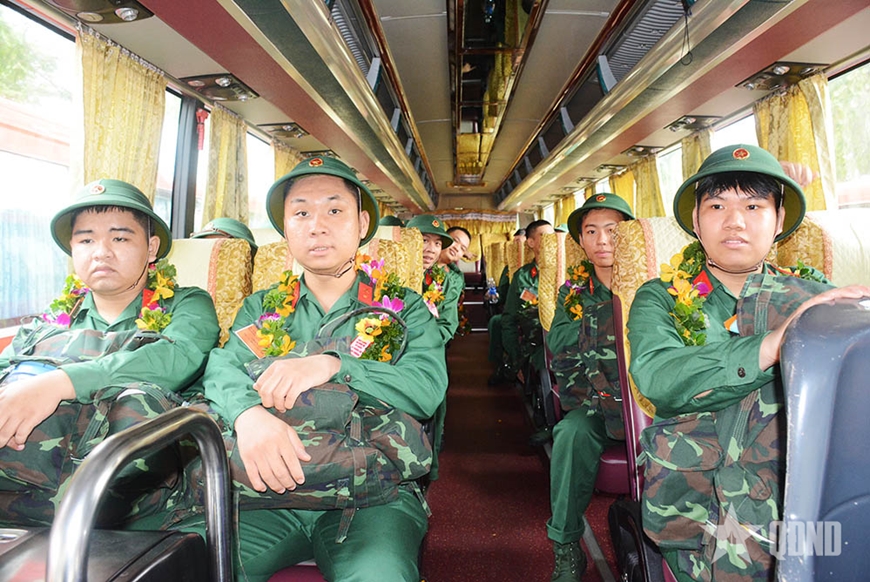 | Chuyến xe xuất phát chở chiến sĩ mới về đơn vị. |