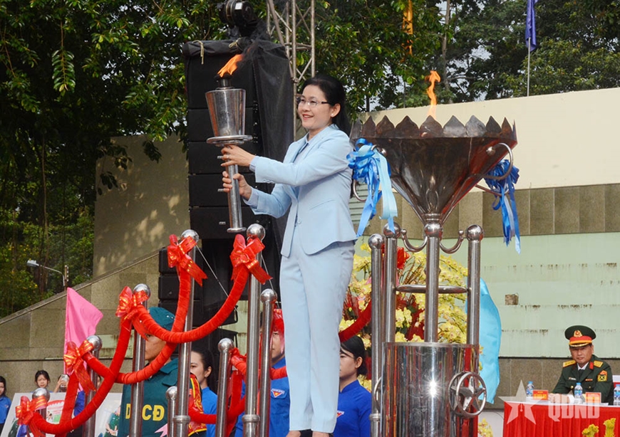 | Đồng chí Tôn Ngọc Hạnh thắp sáng ngọn đuốc truyền thống. |