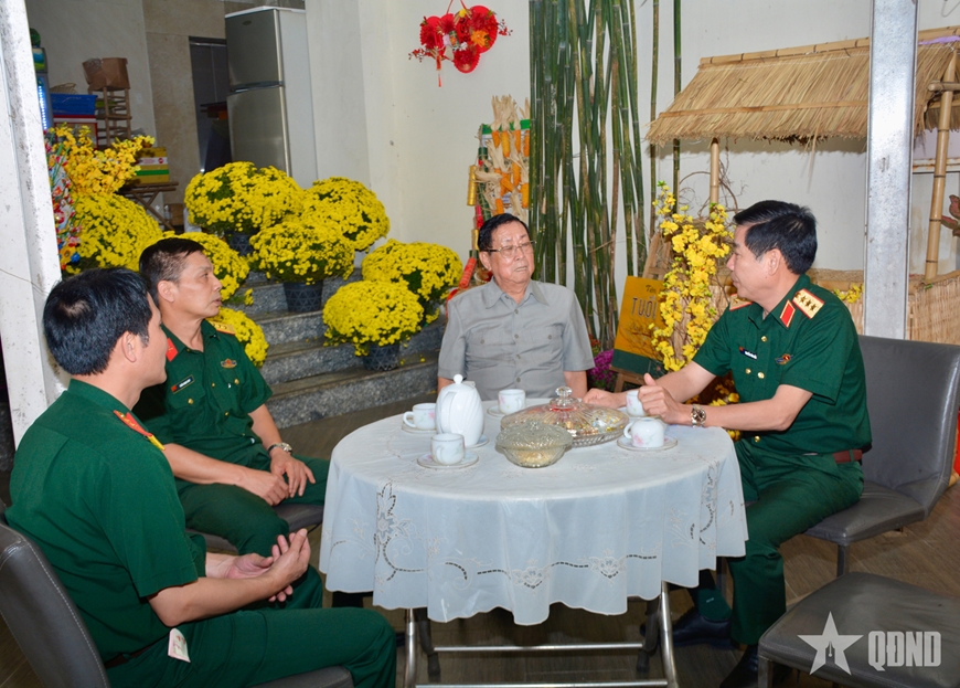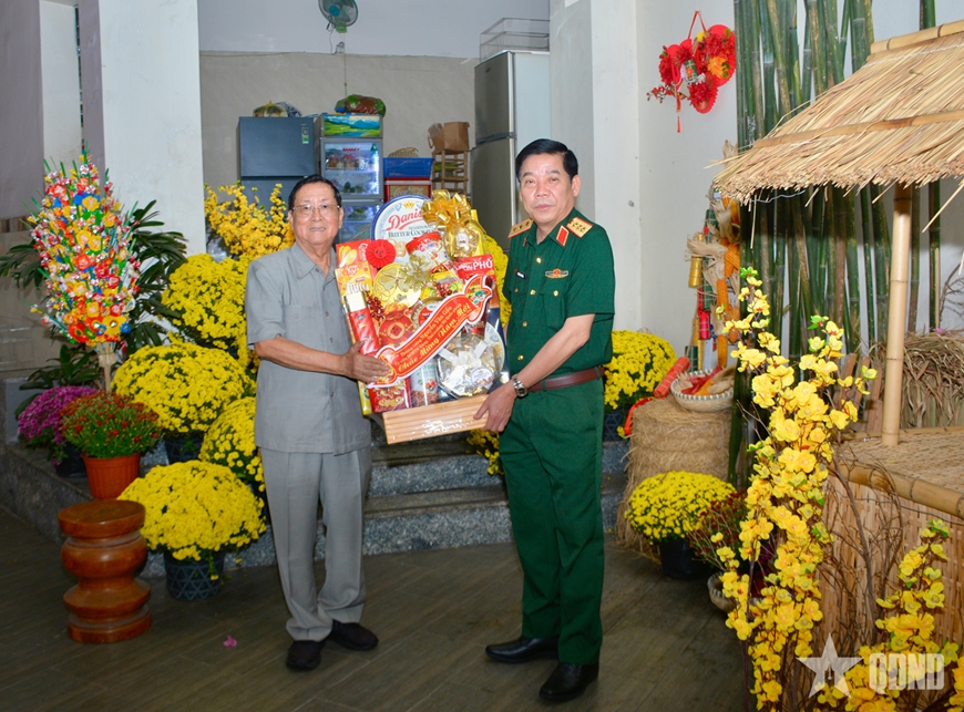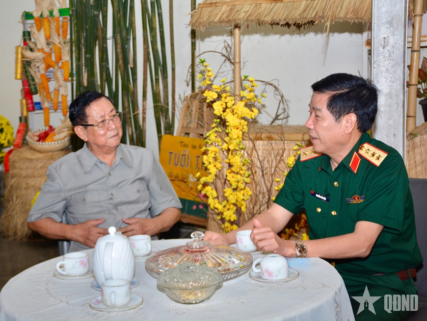 Thượng tướng Nguyễn Văn Gấu đã ân cần thăm hỏi sức khỏe, đời sống và tình hình chuẩn bị đón Tết của Trung tướng, Anh hùng LLVT nhân dân Lưu Phước Lượng cùng gia đình.