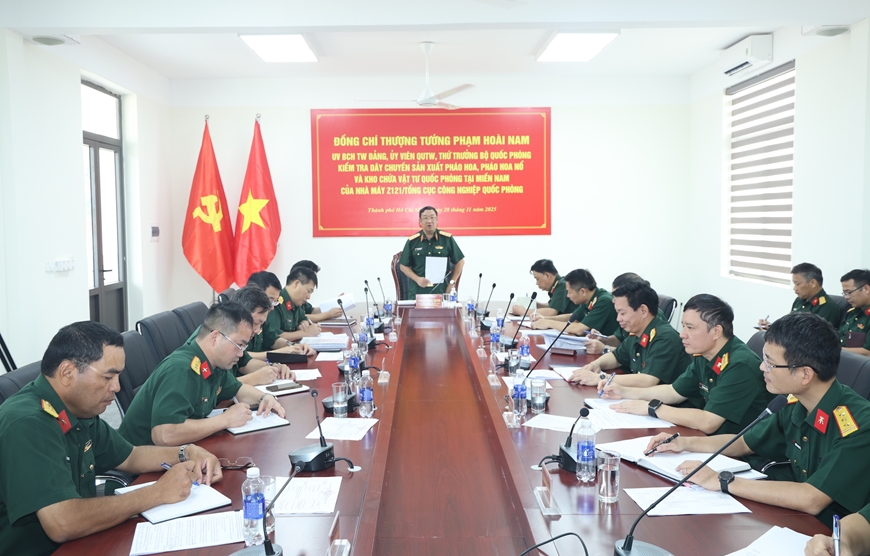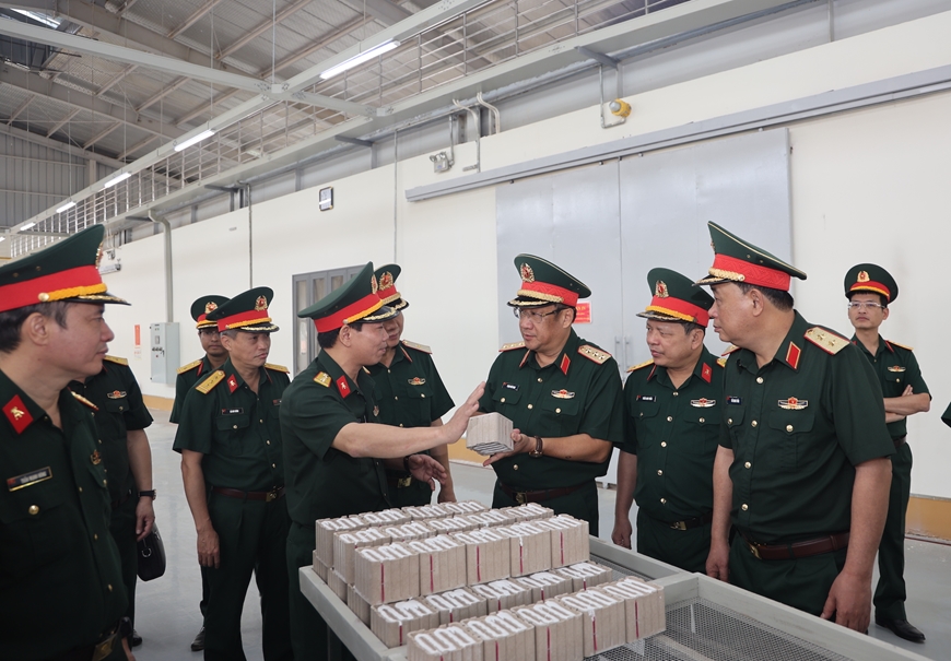 Trước đó, Thượng tướng Phạm Hoài Nam và đoàn công tác đã thị sát nhà xưởng, kho tàng và dây chuyền sản xuất pháo hoa tại miền Nam của Nhà máy Z121.