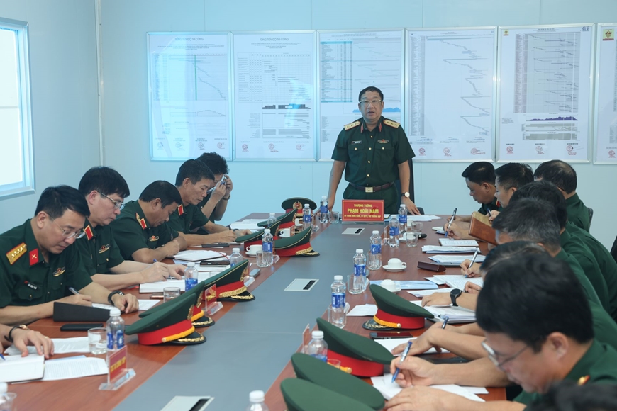 Thượng tướng Phạm Hoài Nam và đoàn công tác kiểm tra tiến độ thực hiện dự án.