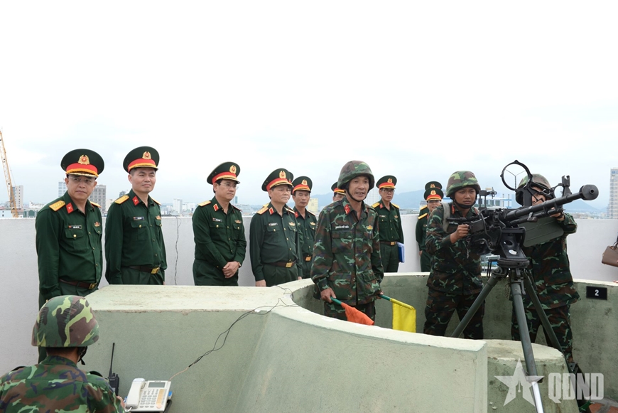 Thượng tướng Phạm Trường Sơn kiểm tra Khẩu đội SMPK 12,7mm kiêm nhiệm cơ quan Bộ CHQS TP Đà Nẵng xử lý tình huống phòng không.