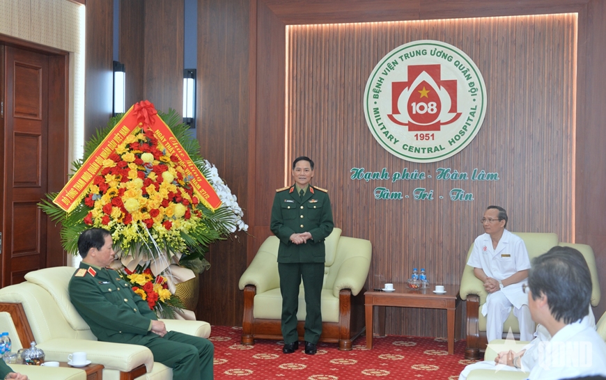 | Thượng tướng Phạm Trường Sơn chúc mừng Bệnh viện Trung ương Quân đội 108. |