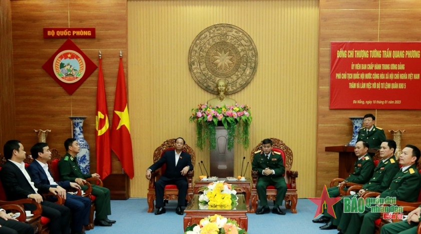 Sau khi nghe Thiếu tướng Lê Ngọc Hải, Phó tư lệnh kiêm Tham mưu trưởng Quân khu 5 báo cáo khái quát kết quả thực hiện nhiệm vụ năm 2022, phương hướng nhiệm vụ năm 2023 của lực lượng vũ trang Quân khu 5, thay mặt đoàn công tác, Thượng tướng Trần Quang Phương ghi nhận, biểu dương, đánh giá cao những kết quả nổi bật mà cán bộ, chiến sĩ lực lượng vũ trang Quân khu 5 đã đạt được trong thời gian qua, nhất là việc quán triệt chủ trương, đường lối của Đảng, chỉ đạo của Chính phủ, Quân ủy Trung ương, Bộ Quốc phòng.