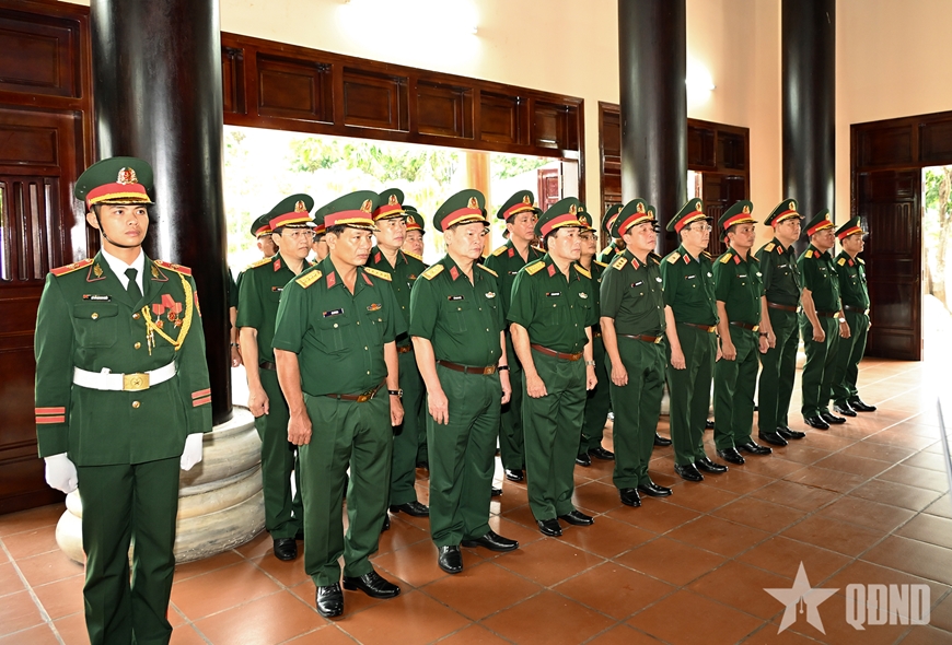 | Thượng tướng Trương Thiên Tô và đoàn công tác tưởng niệm các Anh hùng liệt sĩ Sư đoàn 2. |