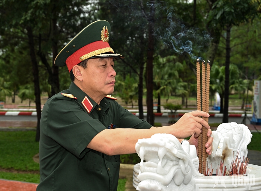 | Thượng tướng Trương Thiên Tô dâng hương tại Tượng đài Chiến thắng của Sư đoàn 2. |