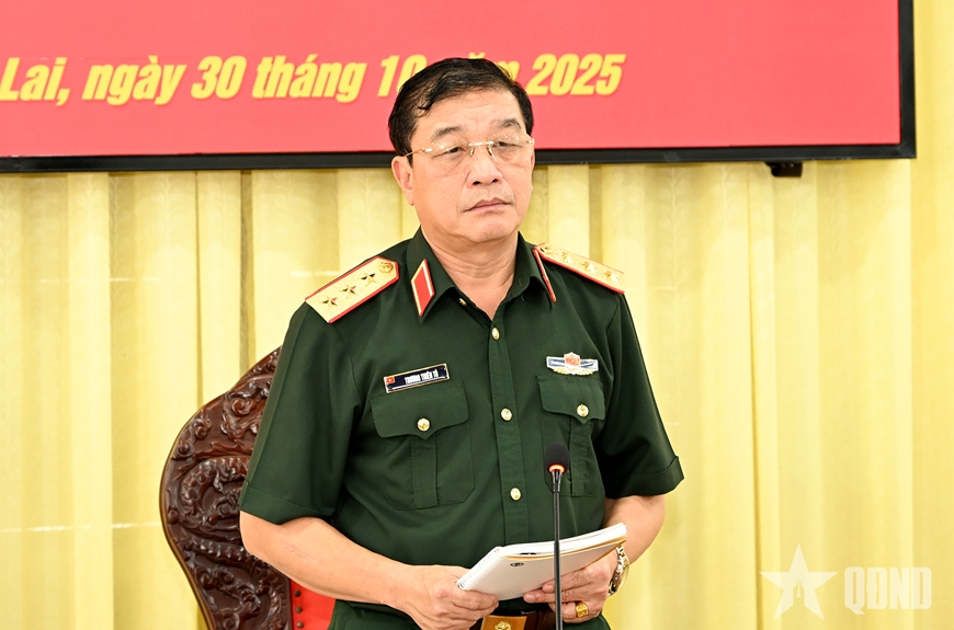 | Thượng tướng Trương Thiên Tô phát biểu chỉ đạo kiểm tra. |