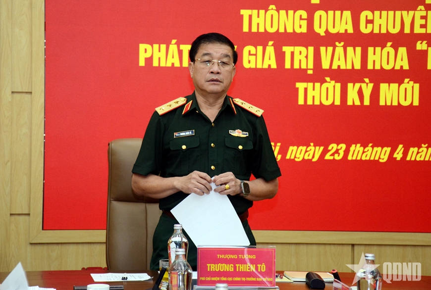 Phát biểu chỉ đạo hội nghị, Thượng tướng Trương Thiên Tô nhấn mạnh, chuyên đề được xây dựng là bước cụ thể hóa Nghị quyết Đại hội đại biểu Đảng bộ Quân đội lần thứ XII, nhiệm kỳ 2025-2030 và chỉ đạo của Quân ủy Trung ương về tiếp tục xây dựng, phát huy giá trị văn hóa “Bộ đội Cụ Hồ” thời kỳ mới. Đồng thời khẳng định, đây là chuyên đề có ý nghĩa hết sức quan trọng, không những là nhiệm vụ cơ bản, thường xuyên mà là yêu cầu cấp thiết, nhằm tạo động lực mạnh mẽ, cổ vũ toàn quân nỗ lực phấn đấu vươn lên hoàn thành thắng lợi mọi nhiệm vụ được giao, thiết thực xây dựng Quân đội nhân dân Việt Nam cách mạng, chính quy, tinh nhuệ, hiện đại, đáp ứng tốt yêu cầu nhiệm vụ trong tình hình mới.