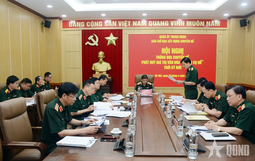 Đến nay, dự thảo chuyên đề đã hoàn thiện với 34 trang; ngoài phần Mở đầu và Kết luận, nội dung chuyên đề được chia thành 3 phần chính gồm: Những vấn đề chung về phát huy giá trị văn hóa “Bộ đội Cụ Hồ” thời kỳ mới; thực trạng và một số kinh nghiệm phát huy giá trị văn hóa “Bộ đội Cụ Hồ”; quan điểm, mục tiêu và nhiệm vụ, giải pháp phát huy giá trị văn hóa “Bộ đội Cụ Hồ” thời kỳ mới.