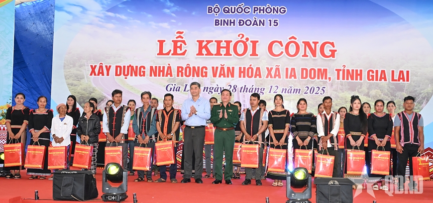 Nhân dịp này, Thượng tướng Trương Thiên Tô và lãnh đạo các đơn vị đã trao nhiều phần quà tặng các già làng, người có uy tín, nhân dân trên địa bàn xã Ia Dom.