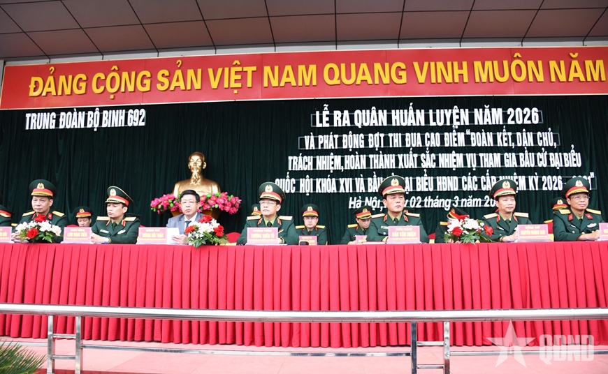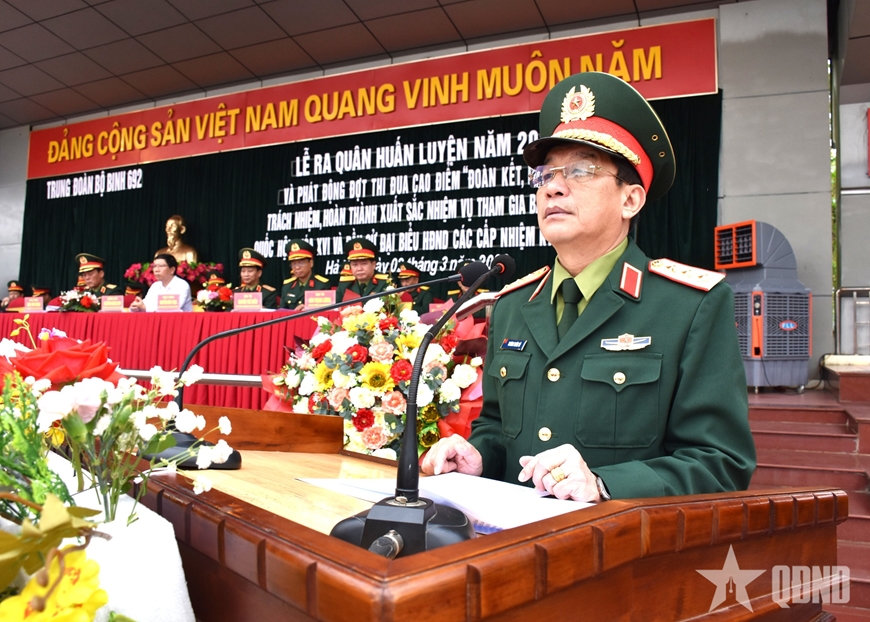Phát biểu tại buổi lễ, Thượng tướng Trương Thiên Tô ghi nhận và biểu dương những thành tích mà cán bộ, chiến sĩ Trung đoàn 692 đã đạt được trong thời gian qua. Để hoàn thành thắng lợi nhiệm vụ năm 2026, Thượng tướng Trương Thiên Tô đề nghị Trung đoàn tập trung thực hiện tốt một số nhiệm vụ trọng tâm.