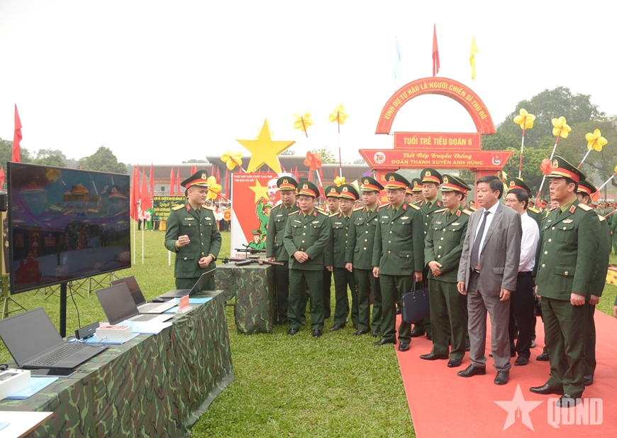 | Các đại biểu tham quan sáng kiến "Chiến sĩ thông thái" của Tiểu đoàn 6, Trung đoàn 692. |