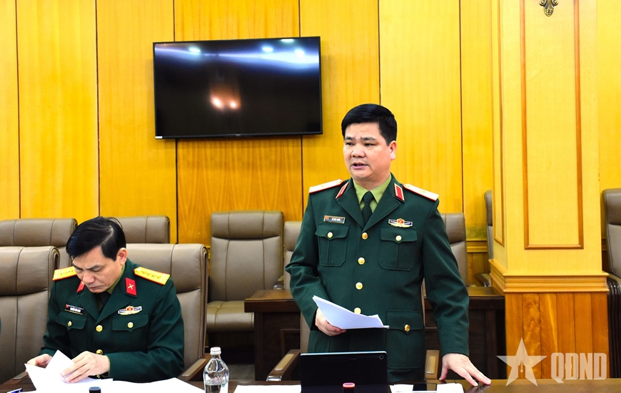 Thiếu tướng Bế Hải Triều, Cục trưởng Cục Dân vận báo cáo những nhiệm vụ trọng tâm thực hiện trong năm 2026.