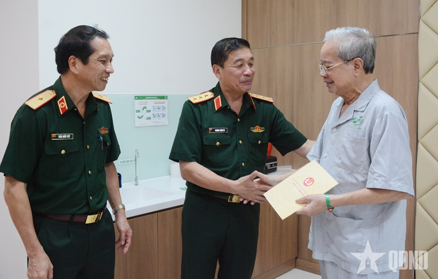 Dịp này, Thượng tướng Trương Thiên Tô đã thăm, tặng quà cán bộ cấp cao đang điều trị tại Bệnh viện Quân y 175.