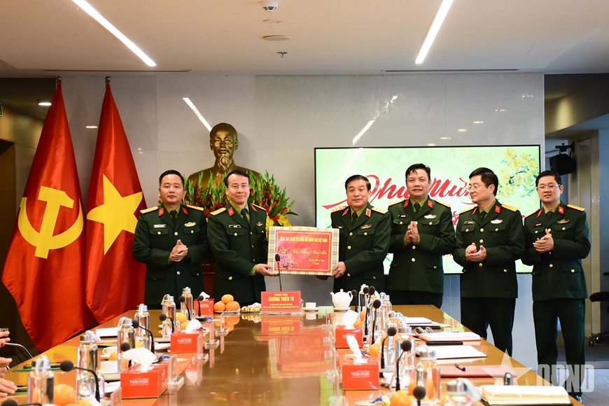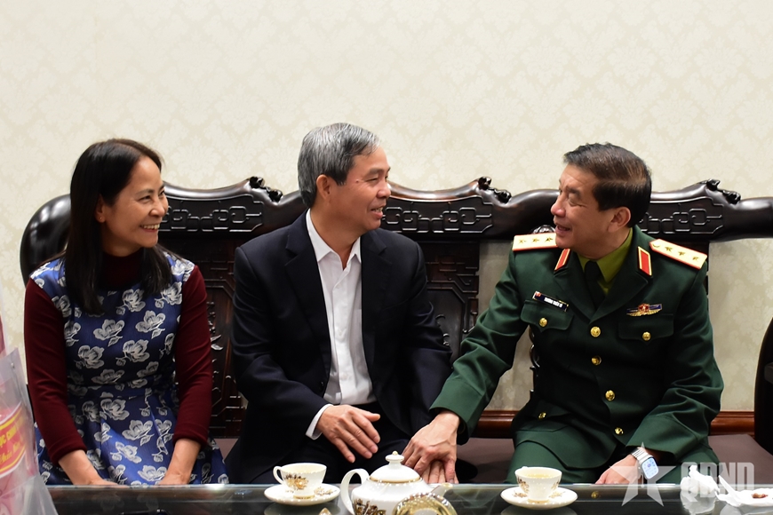 Thăm, chúc Tết Thượng tướng Đỗ Căn, Thượng tướng Trương Thiên Tô ân cần thăm hỏi sức khỏe, đời sống và trao đổi về những hoạt động nổi bật của Tổng cục Chính trị trong thời gian qua.