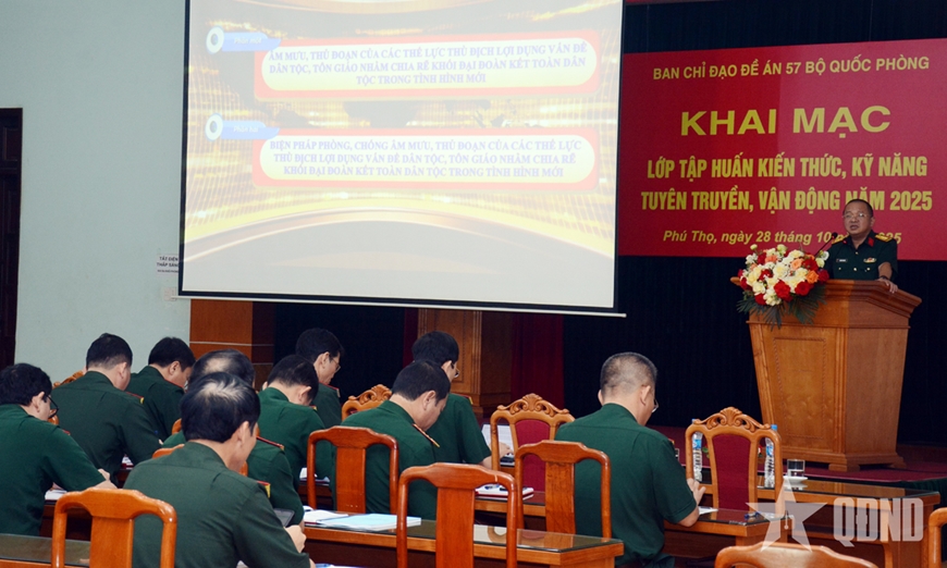 Phát biểu khai mạc tập huấn, Thượng tướng Võ Minh Lương ghi nhận, biểu dương những thành tích nổi bật trong công tác tuyên truyền, vận động của các cơ quan, đơn vị trong thời gian qua; khẳng định việc bồi dưỡng kiến thức, kỹ năng tuyên truyền, vận động cho cán bộ, chiến sĩ nói chung, trong đó có đội ngũ cán bộ trực tiếp làm công tác tham mưu, hướng dẫn triển khai thực hiện Đề án 57 của các cơ quan, đơn vị là rất quan trọng, nhất là trong tình hình thực tiễn hiện nay.