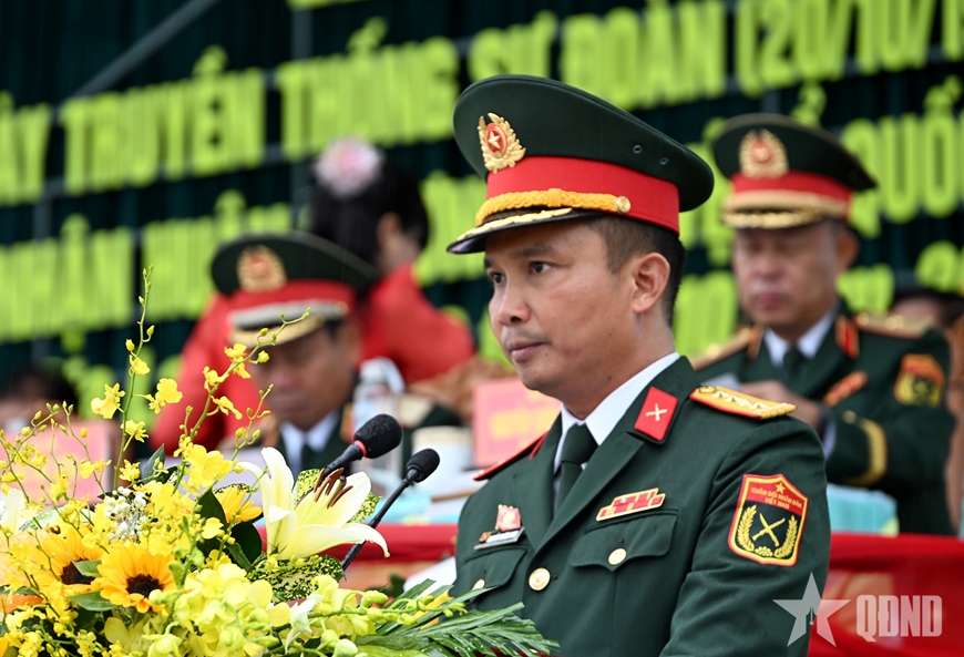 Tại buổi lễ, Đại tá Nguyễn Trường Sinh, Sư đoàn trưởng Sư đoàn 2 trình bày diễn văn ôn lại lịch sử, truyền thống chiến đấu anh dũng, kiên cường của đơn vị; tri ân các Anh hùng liệt sĩ, tôn vinh công lao, cống hiến của các thế hệ cán bộ, chiến sĩ Sư đoàn qua các thời kỳ.